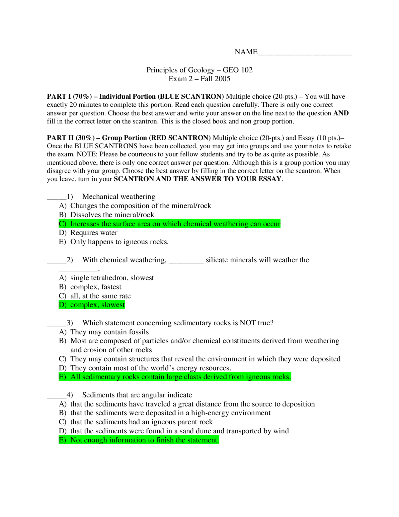 Solved Exam 2 For Principles Of Geology Geo 102 00 Docsity