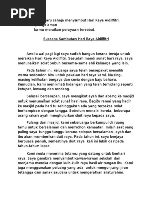 Bincangkan punca-punca berlakunya kemalangan di jalan raya. Kamu menyambut ketibaan hari raya puasa dengan suasana meriah. Suasana sambutan hari raya aidilfitri.